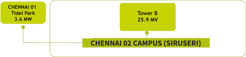 Sify's data center in Chennai's Tidel Park has a 3.6 MW IT power capacity. A new campus of three towers at Siruseri, Chennai, will be operational soon, adding up to 130+ MW of total IT power capacity. The strategic position of this data center enables organizations from the Manufacturing, IT/ITeS, BFSI, Healthcare and Pharma sectors to run their business-critical applications.